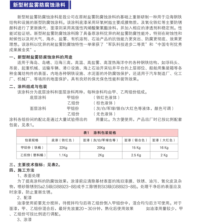 產(chǎn)品分類:油罐外壁、管外壁用防腐蝕涂料、各種鋼結(jié)構(gòu)用防腐蝕涂料、各種混凝土用防腐蝕涂料、鉆井平臺用防腐蝕涂料、艦船用防腐蝕涂料、沿海地區(qū)用防腐蝕涂料