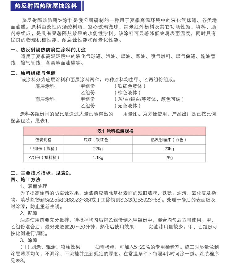 熱反射涂料適用于夏季高溫環(huán)境中的液化氣球罐、汽油、煤油、柴油、噴氣燃料、煤氣儲罐、輸油管線、輸氣管線、各類地面油罐等。